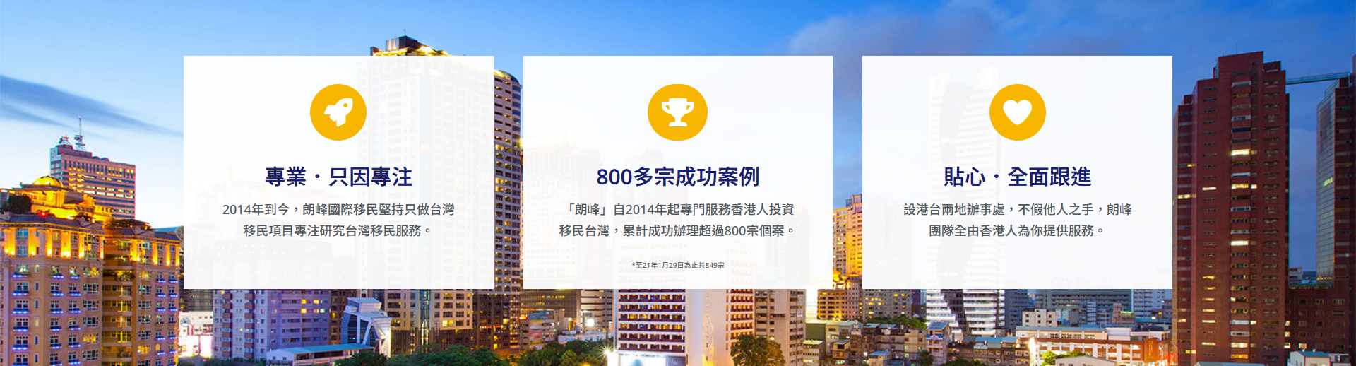 「朗峰」一直專注台灣,熟悉台灣各式移民及台灣經商細節,祝你在台灣安居樂業生活無憂。